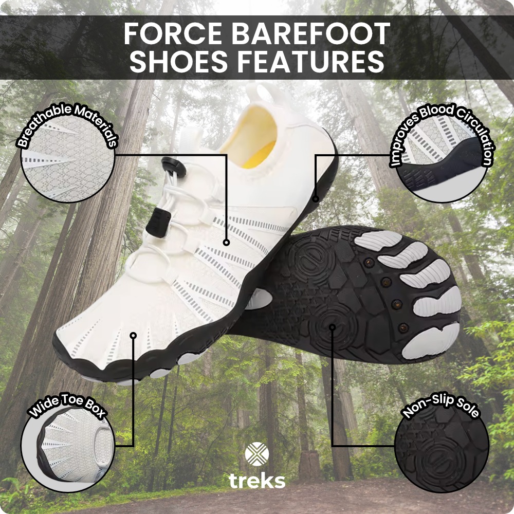 Versatile and Lightweight - Treks-Force barefoot shoes feature a breathable design that’s perfect for everyday wear. They provide comfort and support, catering to a variety of foot health needs.