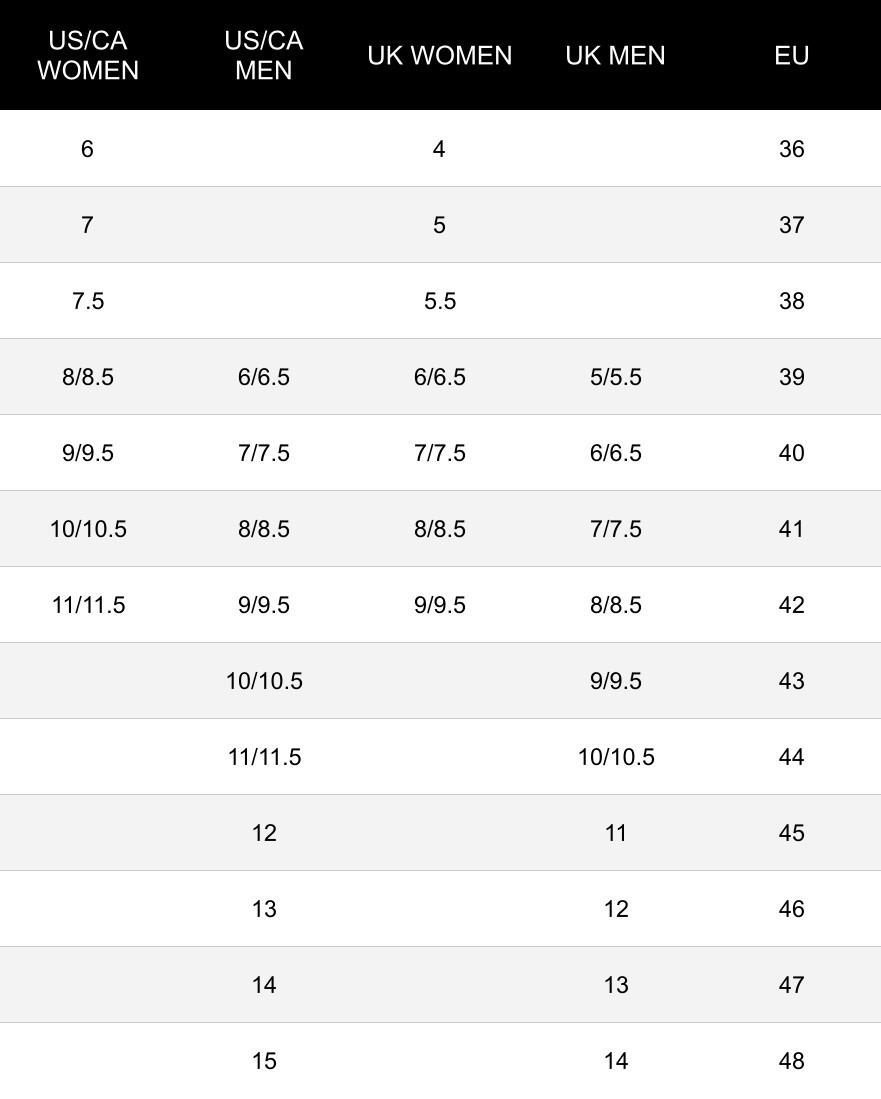 | USA/CA Women | USA/CA Men | UK Women | UK Men | EU |
