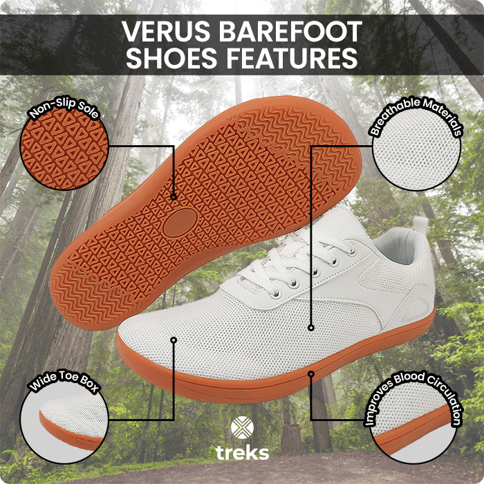 Versatile and Lightweight - Treks-Verus barefoot shoes feature a breathable design that’s perfect for everyday wear. They provide comfort and support, catering to a variety of foot health needs.