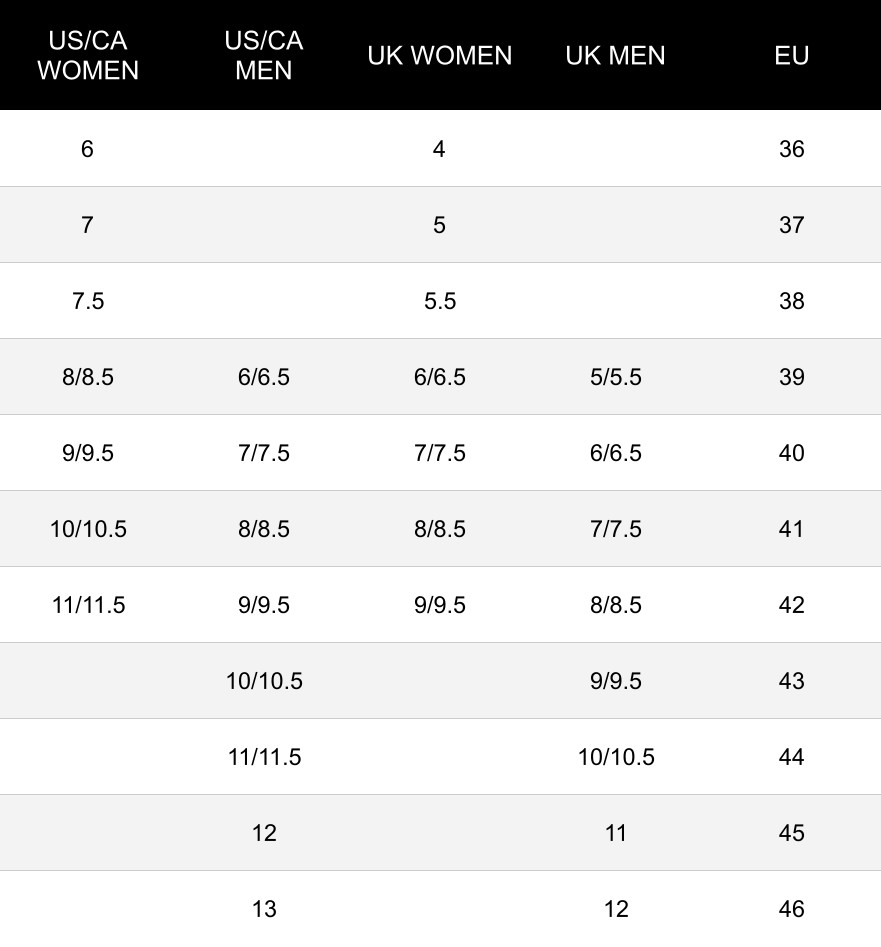If you usually purchase Euro or UK sizes, refer to the convenient conversion chart provided next to this section.